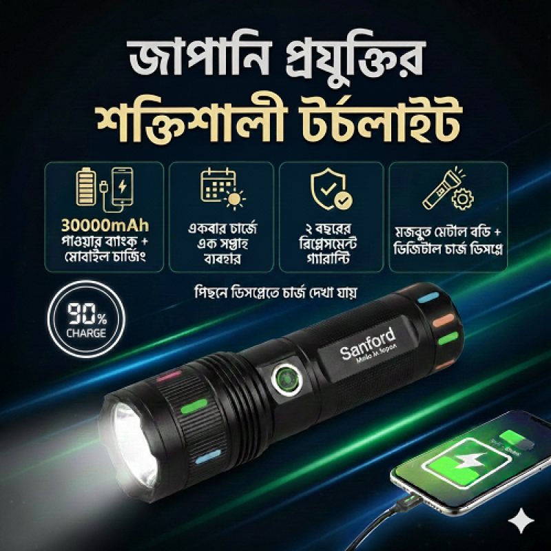 অন্ধকারকে জয় করতে এবং বিপদে স্মার্টফোন চার্জের নিশ্চিন্ত সমাধান পেতে নিয়ে এলাম অরিজিনাল জাপানি Sanford ব্র্যান্ডের মেটাল বডি টর্চ লাইট। এটি কেবল একটি লাইট নয়, আপনার দীর্ঘদিনের বিশ্বস্ত সঙ্গী।