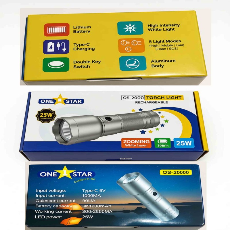 One Star টর্চলাইট ও পাওয়ার ব্যাংক 25W Zooming Torch Light